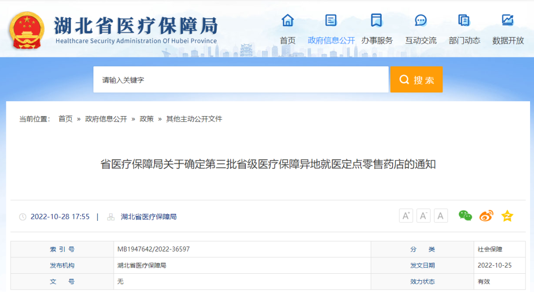 湖北省医疗保障局,近日发布通知,3680家医疗机构入选第21批省级医疗保障异地就医定点医疗机构,2159家零售药店入选第三批省级医疗保障异地就医定点零售药店。
