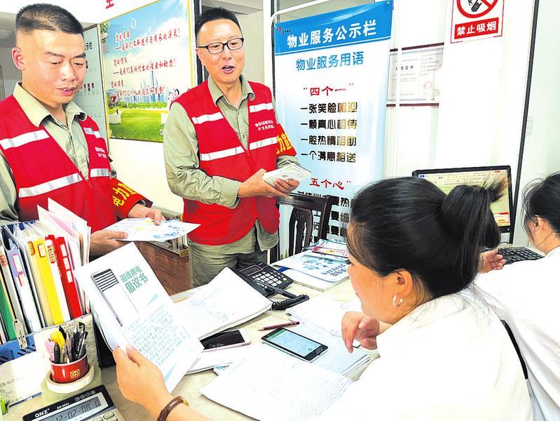 近日,国网随州供电公司营销运营中心党员服务队和青年志愿者到市内各居民小区、物业服务中心和商铺,发放节约用电倡议书,给用户讲述节约用电小窍门,同时回答并解决用户关于电费查询、缴纳以及用电办理等疑问。(随州日报通讯员 陈孜孜摄)