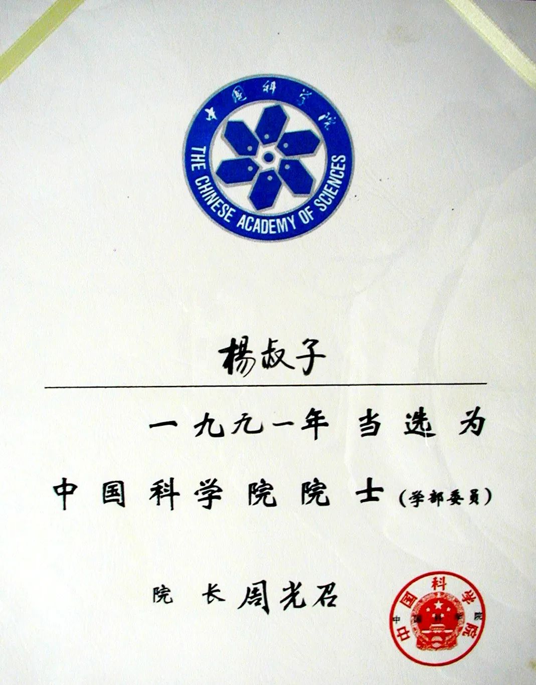 杨叔子1991年当选中国科学院院士,也是华中科技大学第一位院士。