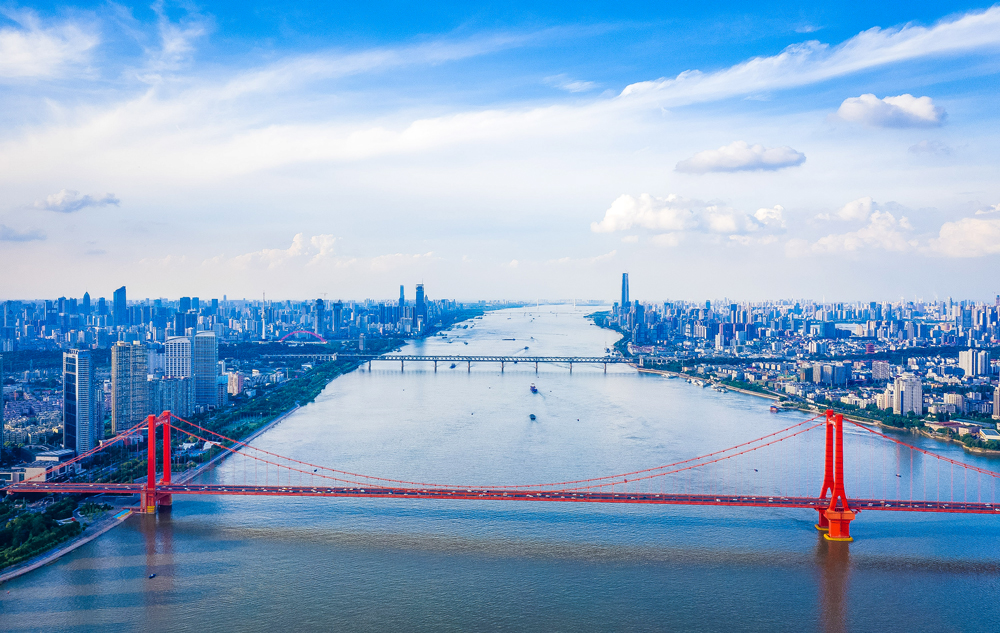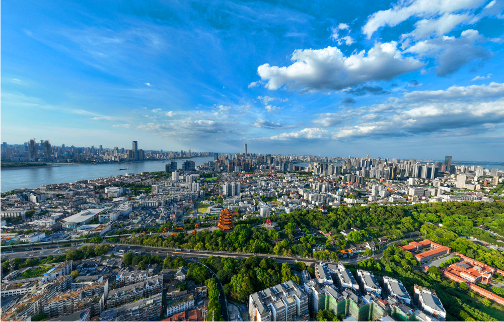 蓝天白云下的武汉,一幅美丽的城市风景画。新华网发 赵军 摄