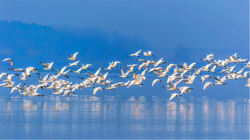 安山国家湿地公园候鸟翔集。新华网发