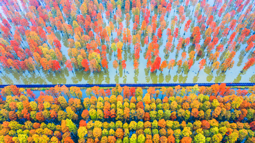 武汉新洲涨渡湖湿地“水上森林”。新华网发 张斌 摄