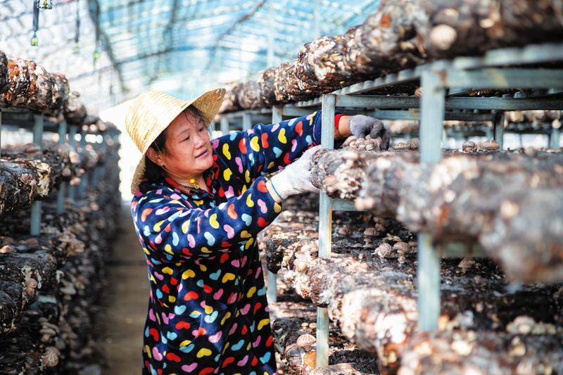 随县高城镇高黄村盛强农民专业合作社香菇基地日前一派忙碌景象,20多位村民正加紧抢摘春裁香菇。 (随州日报全媒记者孙洪涛、通讯员张玉国摄)
