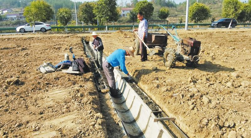 秋冬时节,曾都区何店镇抢抓农闲有利时机,迅速掀起冬季农田水利建设高潮。图为该镇乔麦河村正在组织对高标准农田进行沟渠硬化,确保旱能灌,涝能排。