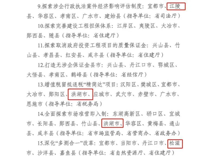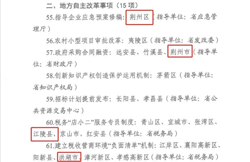 地方自主改革事项(荆州有5项)