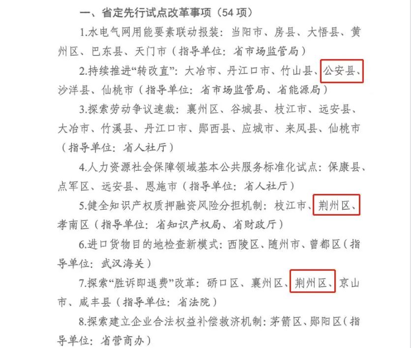 省定先行试点改革事项(荆州有27项)