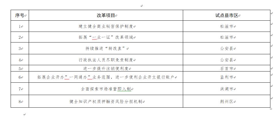 近期,省优化营商环境领导小组印发《省优化营商环境领导小组关于2022年全省优化营商环境改革先行区的通报》,全市市场监管系统共申报八个改革项目,均被通报表扬,分别是松滋市建立健全商业秘密保护制度和拓展“一业一证”行业领域,公安县持续推进“转改直”和行政执法人员尽职免责制度,石首市进一步提升注销便利度,监利市拓展企业开办”一网通办”业务范围,进一步便利企业开立银行账户,洪湖市全面探索市场准营即入制,荆州区健全知识产权质押融资风险分担机制。