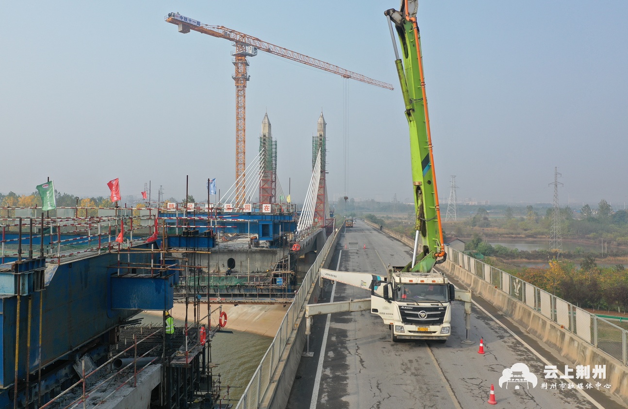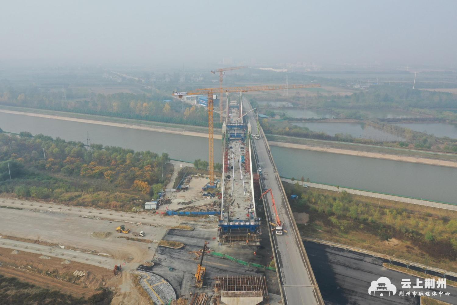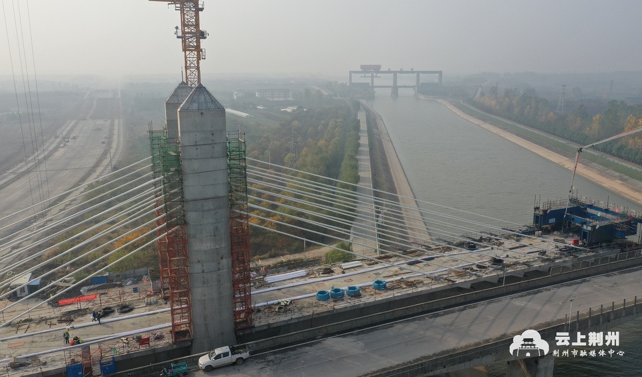 云上荆州报道:江汉运河特大桥是沿江一级公路(荆州至李埠段)项目重要控制性工程,目前施工方正抢抓晴好天气,全力奋战四季度,确保完成全年目标任务,确保大桥按时建成。