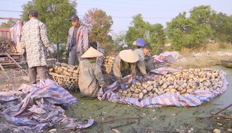 挖藕人鄢银芝告诉记者,每天工作七八个小时,离家比较近,方便照顾家里,一天可以挣个几百块钱。