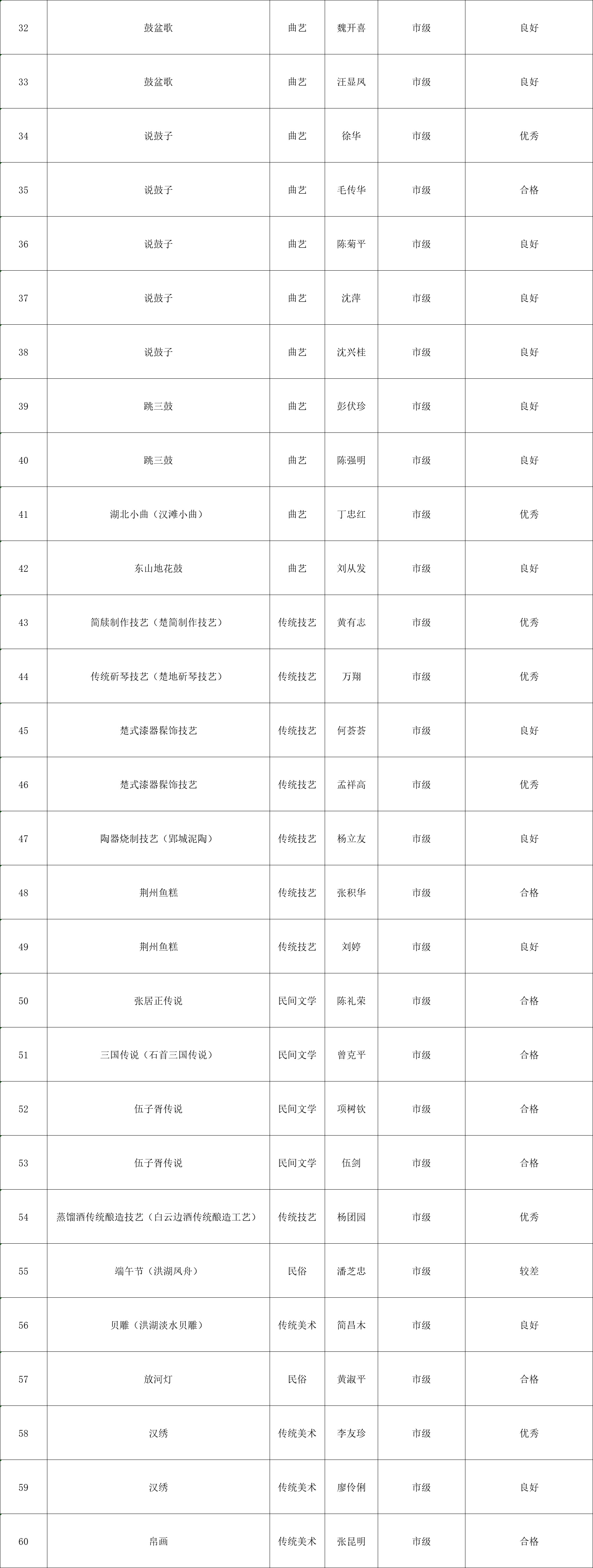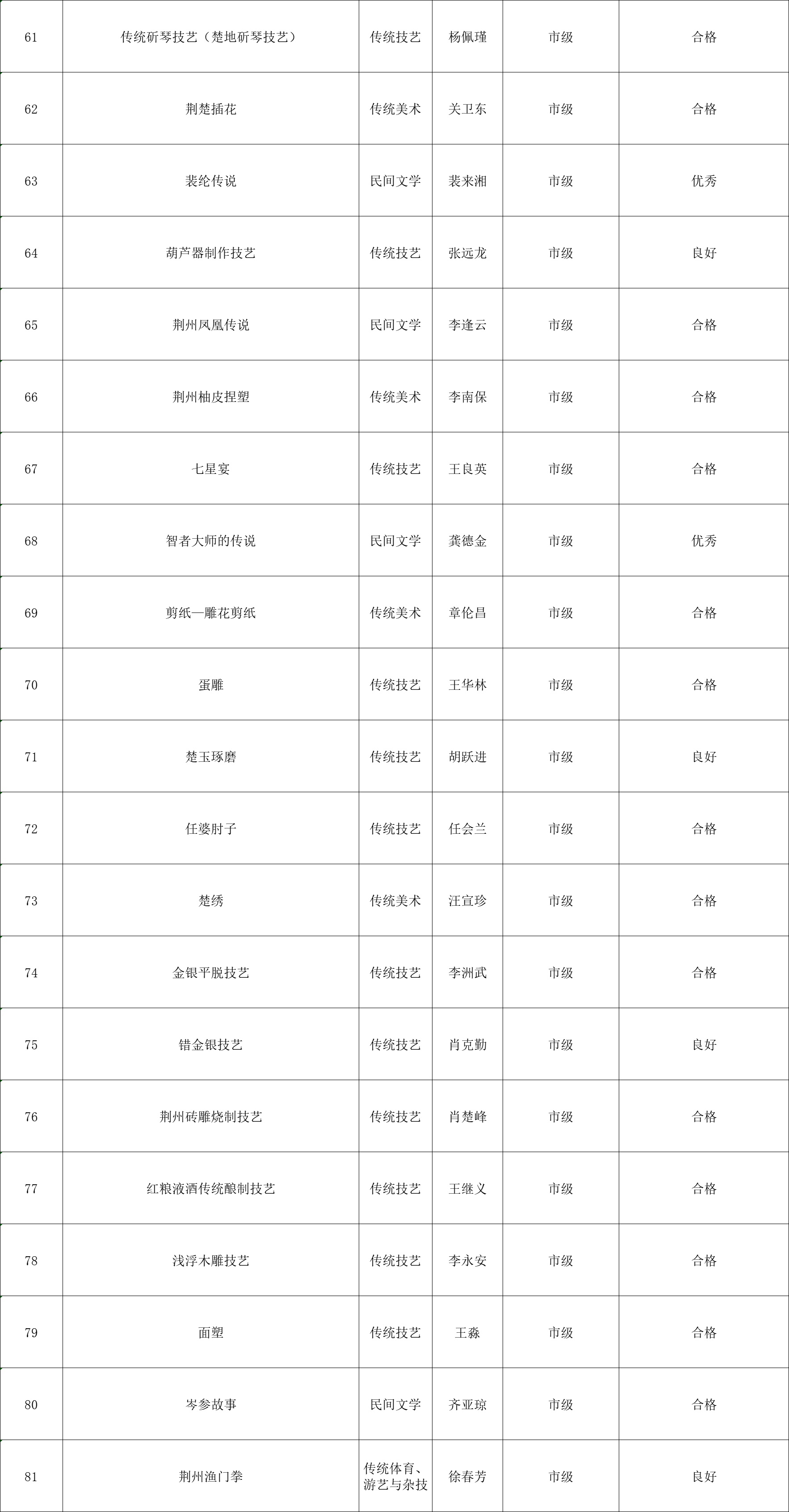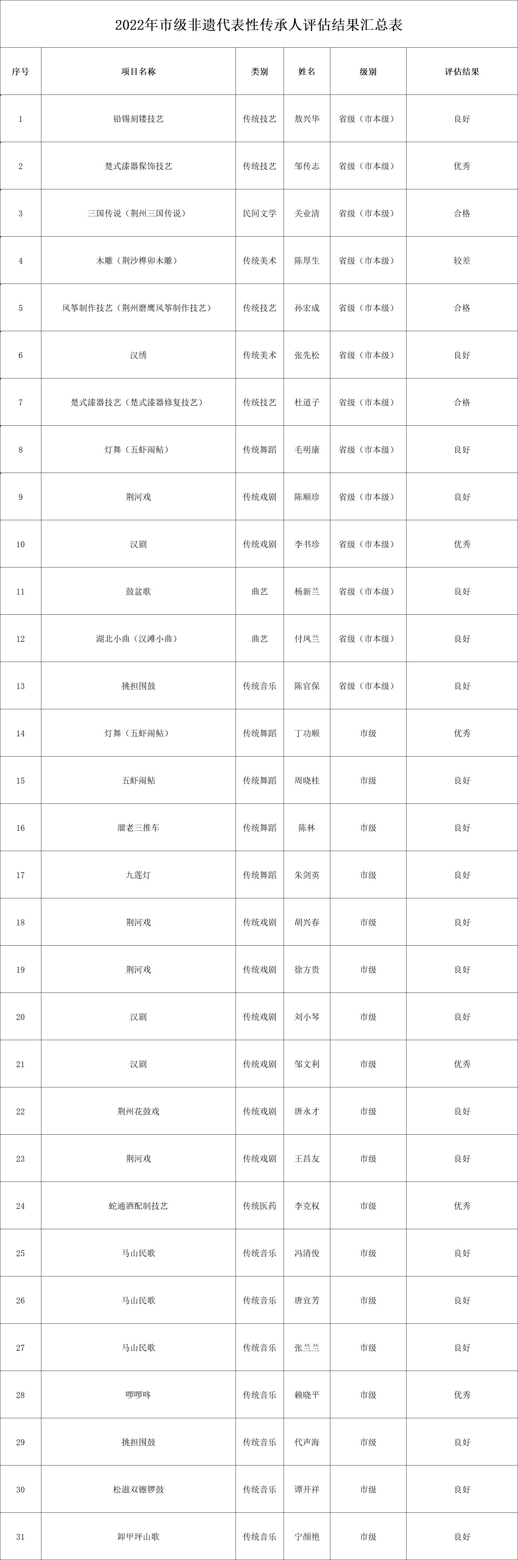 关于荆州市81名非物质文化遗产代表性传承人2022年度传承活动评估结果的公示