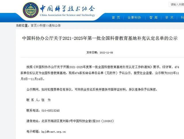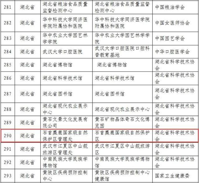 近日中国科学技术协会发布《中国科协办公厅关于2021-2025年第一批全国科普教育基地补充认定名单的公示》石首麋鹿国家级自然保护区、荆州市中小学生社会实践基地入选。