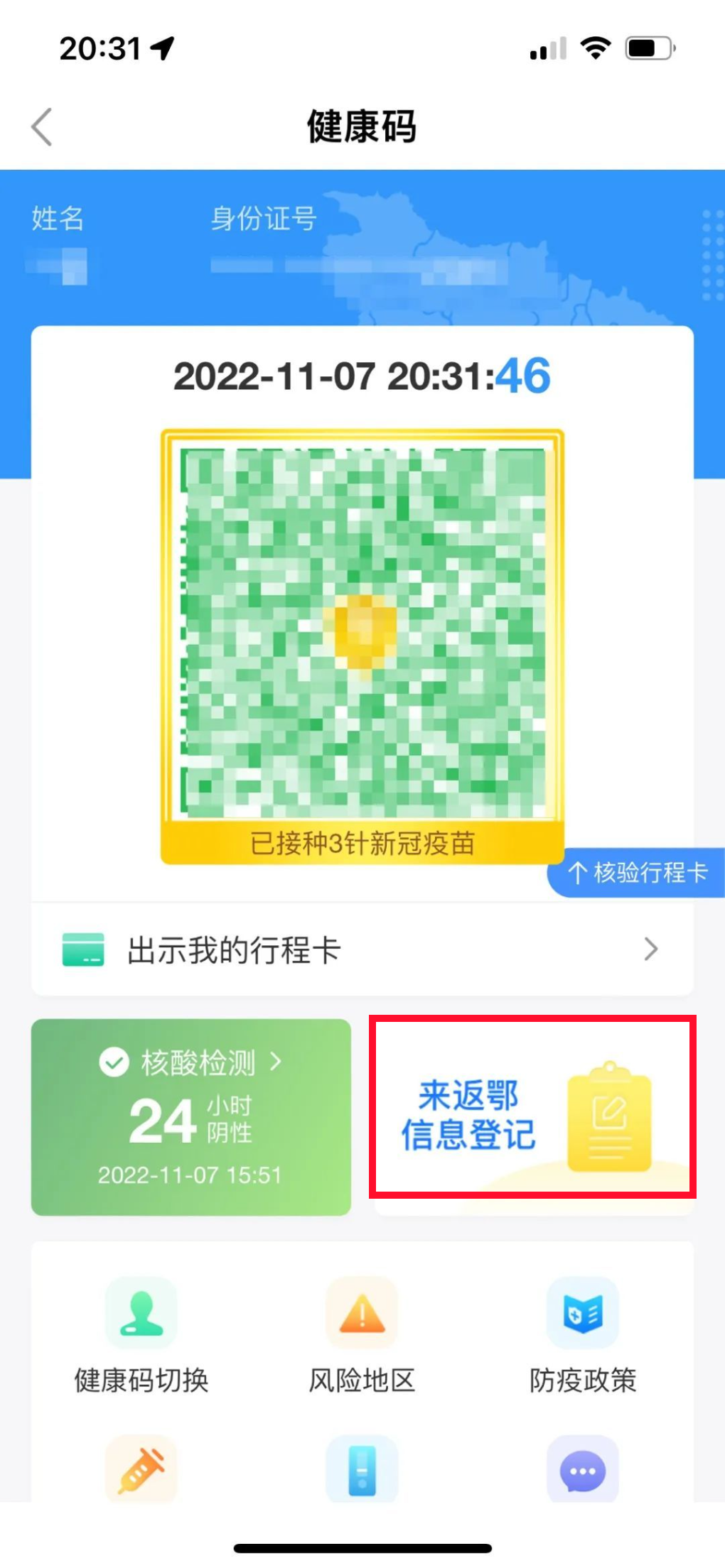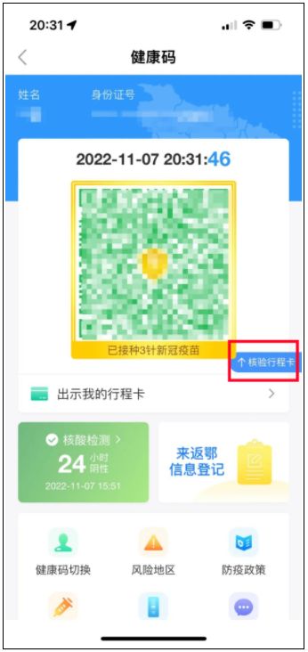 核验行程卡