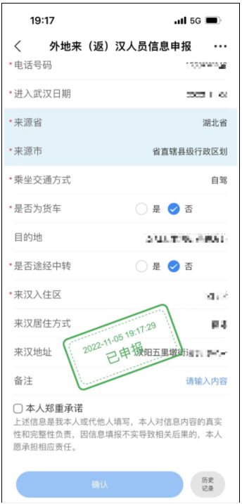 完成自主申报后,会出现“已申报”卡戳,申报卡戳在当天24时前有效。
