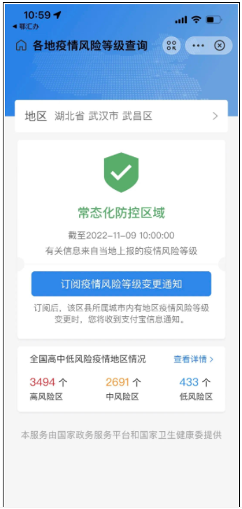 点击“风险地区”,即可查询各地疫情风险等级。