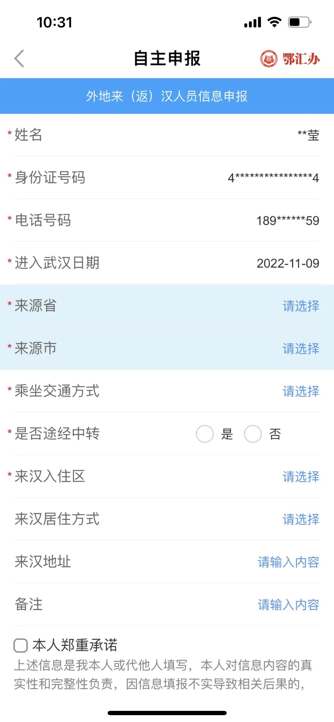 来返鄂信息登记