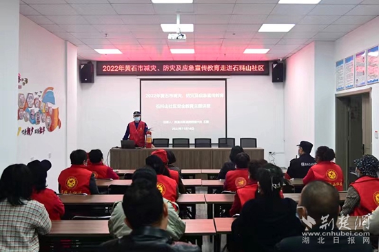 荆楚网(湖北日报网)讯(通讯员 耿伟鹏)11月16日,黄石市消防救援支队宣传人员走进西塞山区牧羊湖街道石料山社区开展应急宣传教育活动,持续巩固辖区居民消防安全常识,提升居民安全素质和防灾减灾救灾能力。