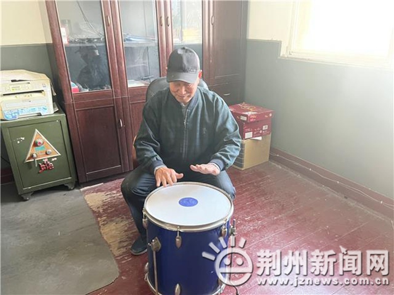 在饱含情绪与力量的歌声中,程姨爹开始了今天的排练。作为一名援越抗美的老战士,退伍转业后的他拾起了在部队文工团里热爱的文艺事业,与几位老兵一拍即合,于2014年底成立了荆州环城都来乐艺术团。