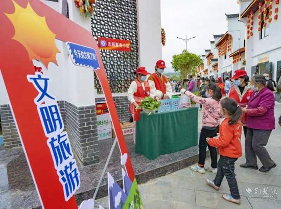 活动现场,大冶市新时代文明实践中心还设置了志愿服务小站,开展“垃圾换门票”“烟头换绿植”的文明旅游主题活动。
