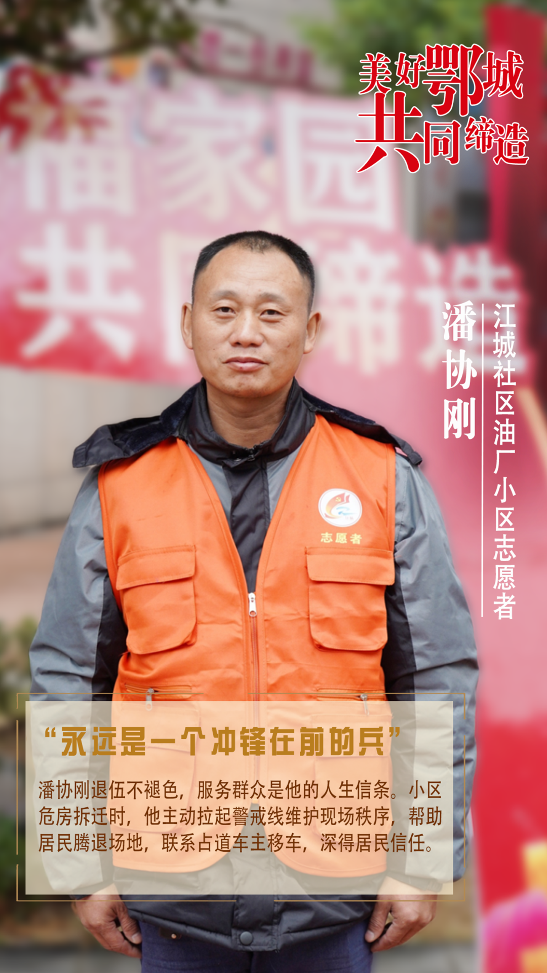 潘协刚退伍不褪色,服务群众是他的人生信条。小区危房拆迁时,他主动拉起警戒线维护现场秩序,帮助居民腾退场地,联系占道车主移车,深得居民信任。