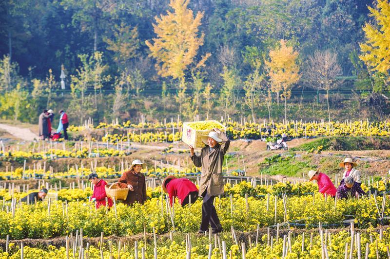 今年,曾都区洛阳镇邱畈村种植桃菊、乒乓菊、白菊、金丝皇菊等药用和观赏菊花,预计年收入60余万元,同时可为30多名村民带来10多万元务工收入。 (随州日报全媒记者徐斌、通讯员万明金摄)