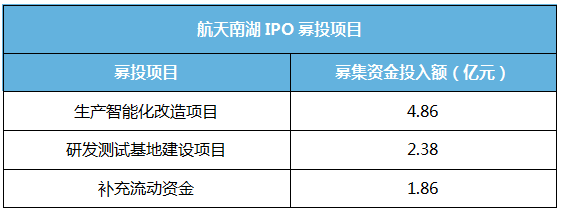 本次IPO,航天南湖拟公开发行不超过8431.2701万股股票,募集资金9.1亿元,将主要用于生产智能化改造、研发测试基地建设项目,以及补充流动资金。