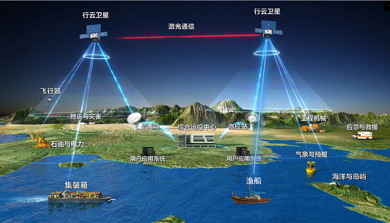 第二阶段建设完成后,就能实现小规模组网,在空间段、地面段及用户段再次提升多项关键核心技术,中国及中国周边区域可以达到平均每30分钟就有一次卫星过顶、提供一次卫星通信服务的能力。系统将形成面向南北纬目标区域的稳定业务运营能力,具备为用户提供较为完整的天基物联网系列产品和系统解决方案能力,能为国内重点城市及“一带一路”沿线国家,规模化推广包括集装箱、海洋、地灾、气象、环保、电力、农业、应急、物流、水利等在内的10多个重点行业的应用,实现行云卫星系统从“试用”到“实用”的跨越。