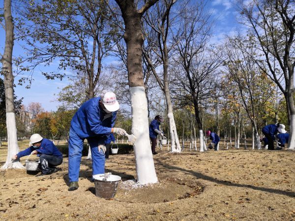 眼下立冬已过,气温逐渐转冷,树木涂白正当时。此次,凤凰湖湿地公园管理中心组织绿化养护工人28名给树木涂白(如图)。绿化养护工人代磊介绍,涂白剂具有一定的杀菌、杀虫作用,可以杀死寄生在树干上的真菌、细菌和害虫,石灰还能防止天牛在树皮的裂缝里产卵,同时还能起到防寒保暖、防止树皮冻裂的作用。在涂白过程中,为达到“颜色均匀、整齐划一”的涂白目标,绿化养护工人将每棵树木标定基准线,严格标准,刷白高度从树根到基准线1.2米,做到止口平整、高度一致、不留死角,浓度、白度均匀,确保整体美观。此次涂白树木有栾树、桂花、青桐、柳树等13000余株。