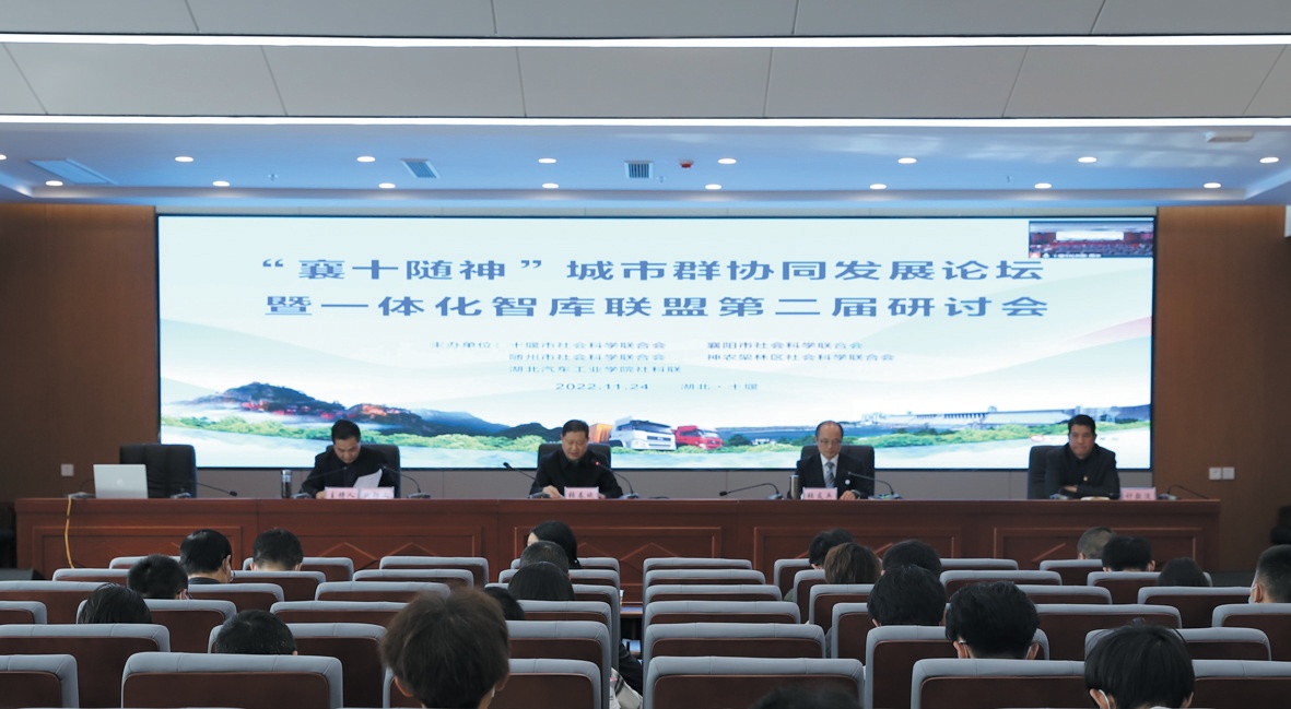 本报讯通讯 员 郭成梁时荣 报道:11月24日,由十堰市社会科学联合会、襄阳市社会科学联合会、随州市社会科学联合会、神农架林区社会科学联合会、湖北汽车工业学院社科联联合主办的“襄十随神”城市群协同发展论坛暨一体化智库联盟第二届研讨会在湖北汽车工业学院通过线上线下的方式成功举办(如图)。
