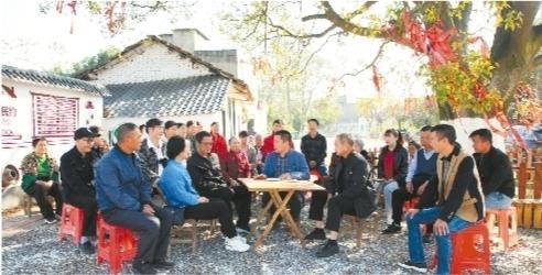 同强村古朴树下,村民正在议事。 (通讯员 明雄 摄)