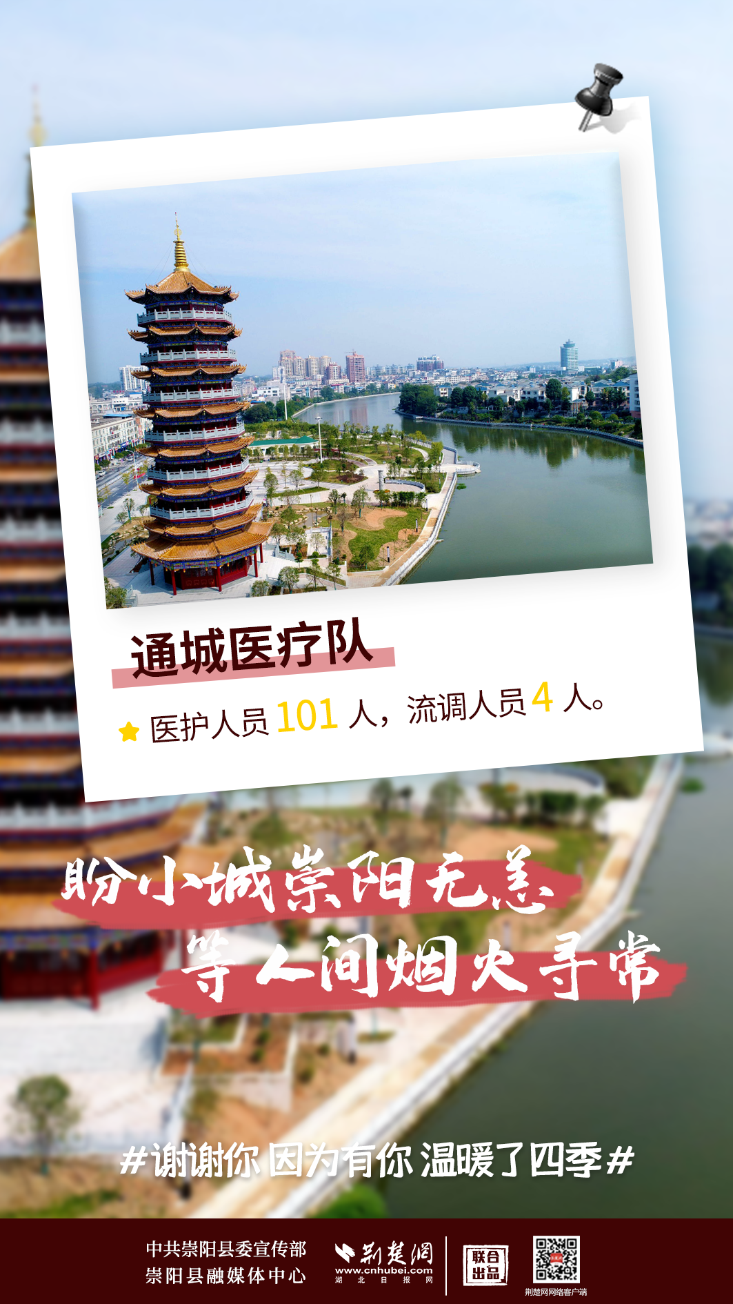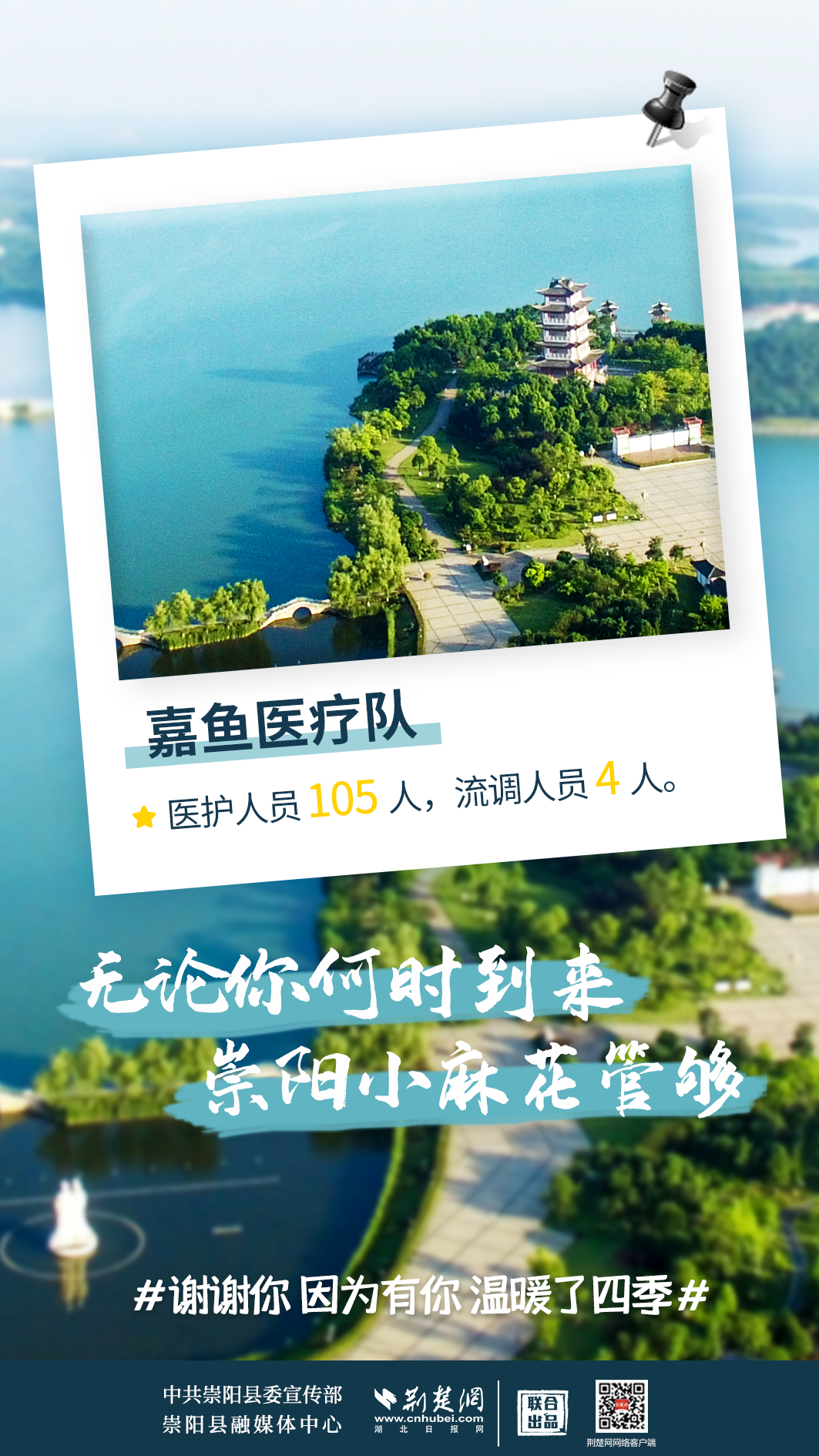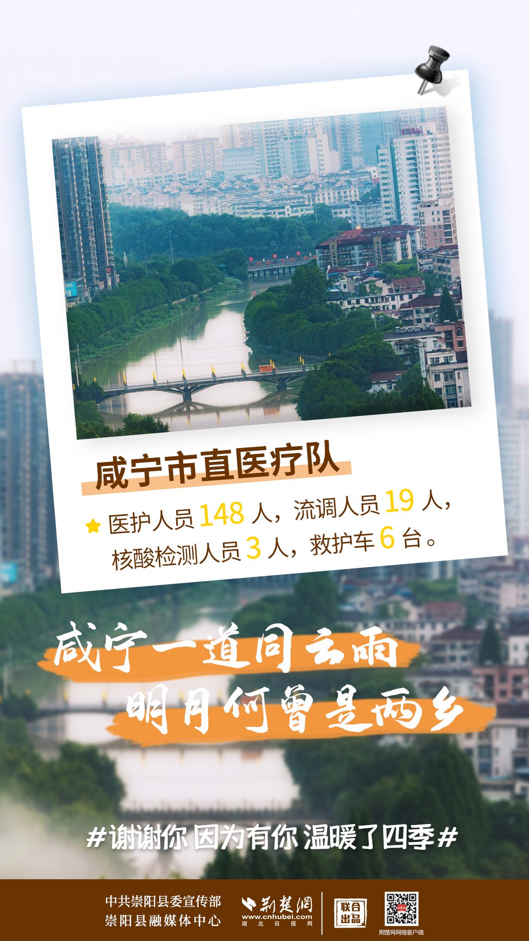 修我甲兵,与子偕行。在崇阳县疫情防控形势最严峻、最艰难的时刻,来自咸宁市直、通山县、通城县、嘉鱼县4支医疗队,489名医务人员,火速支援崇阳抗疫,马不卸鞍,人不解甲,便同51万崇阳人民一道相守偕行,并肩作战。