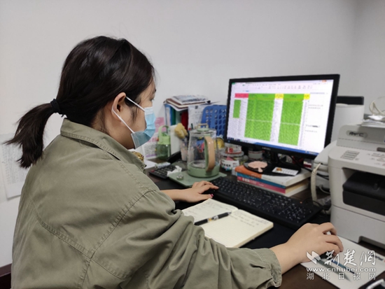 父亲奔赴一线,女儿“点亮”县城。在国网崇阳供电公司大楼内,女儿王栖雅正在显示器旁密切监视电网运行状况。