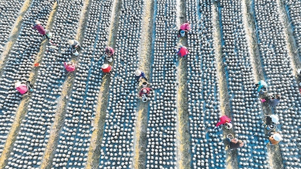 11月26日,房县土城镇塘埂、穿山堰两个村的村民在食用菌产业基地采收黑木耳。房县是驰名中外的“木耳之乡”,黑木耳、香菇获得欧盟地理标志产品认证和出口欧盟的“通行证”。近年来,该县采取“公司+合作社+农户”的模式,发展规模型、质量效益型黑木耳、香菇等食用菌产业,实现农业提质增效,促进乡村振兴。如今,当地黑木耳、香菇年均实现产值9.2亿元,创汇9500万美元,食用菌成为乡村振兴、带动农民共同增收致富的支柱产业。特约记者 张启龙 摄