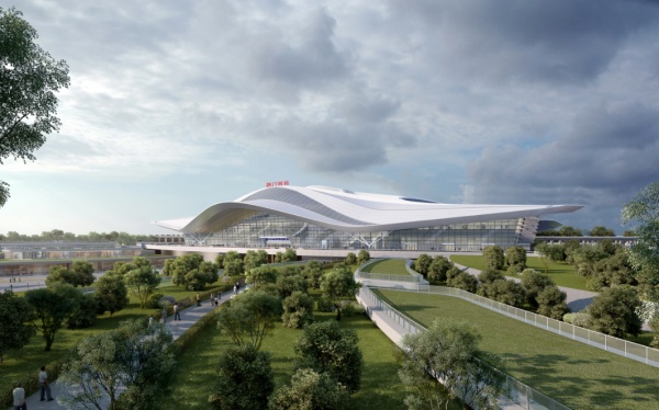荆门西站是展现城市发展和形象的新篇之作,具有承前启后、继往开来的意义。站前广场的设计呼应站房“凤舞荆楚 振翅高飞”的形象,以站城融合、山水城市为总体设计理念,规划用地面积约26.41万㎡(其中广场工程占地18.06万㎡,市政道路工程占地8.35万㎡),主要建设广场地面、停车楼及换乘空间、集疏运匝道系统、市政道路等四个单元,总建筑面积约7.27万㎡,概算投资总额13.46亿元。结合荆门西站进出站客流流向和未来发展需要,规划社会停车位1002个,公交大巴停车位112个,出租及网约车位120个,同时预留了78亩地下空间开发用地,未来可根据需要增加各类地下停车位约1000个。
