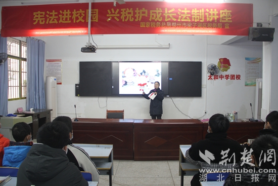 荆楚网(湖北日报网)讯(通讯员 谈恩维)12月1日,在国家宪法日来临之际,梁子湖区税务局普法宣传队在太和中学开展宪法宣讲进校园活动。
