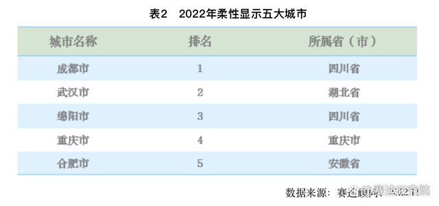 据该报告,武汉在“2022年新型显示十大城市”中位居第四,位列广州市、合肥市、深圳市之后;在“2022年柔性显示五大城市”中,武汉位居第二,位列成都市之后。