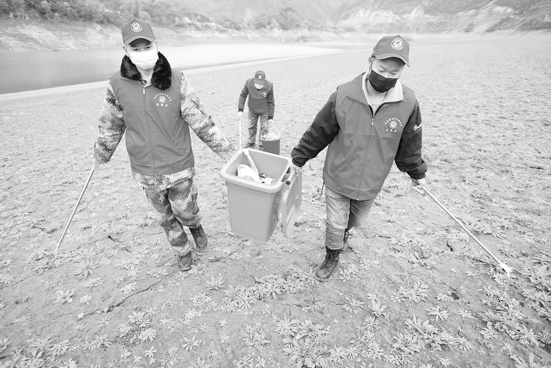 12月2日,房县39名县级河长、姚坪乡乡村两级河长联动,拉网式清理堵河房县境内河面漂浮物。近年来,该县全天候、全时段、常态化保洁堵河流域,持续美化河流两岸环境,保障河水常清。特约记者张启龙通讯员任杰摄