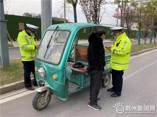 十多分钟后,一辆三轮电动车非法载人被民警拦截。经过进一步检查,这辆三轮车电动车没有车牌,驾驶员也没有驾驶证,民警现场暂扣车辆。