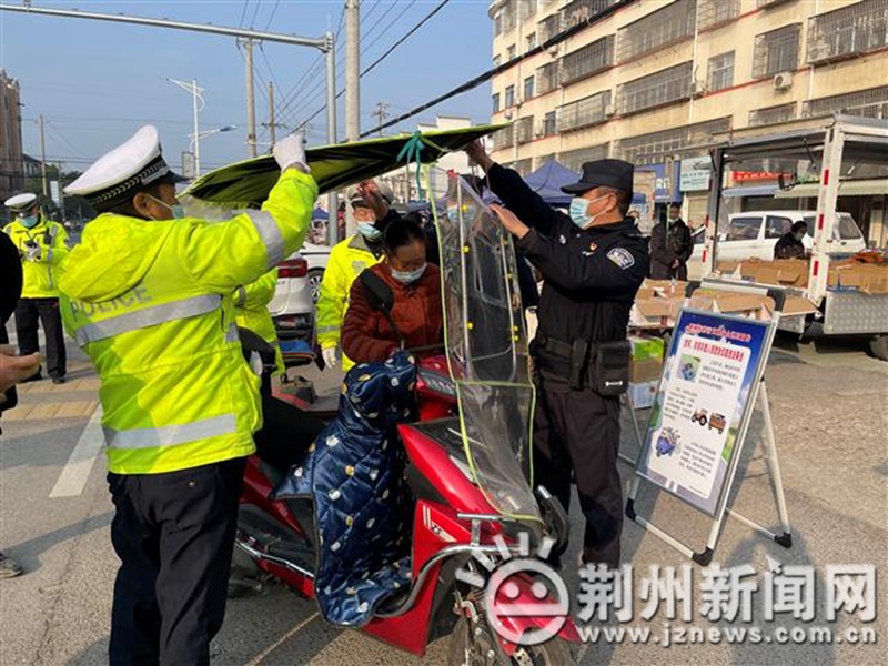 除了现场整治,民警还来到荆州区菱角湖管理区楚源社区,跟社区居民开展安全宣传。