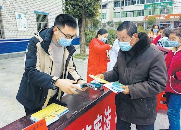 12月5日,竹溪县司法局工作人员在街头开展宪法宣传活动。连日来,该局采取线上线下宣传、社会面宣传、网上新媒体宣传等形式,弘扬宪法精神,树立宪法权威,营造全民尊法学法守法用法的浓厚氛围,掀起宪法宣传新高潮。通讯员张清波摄