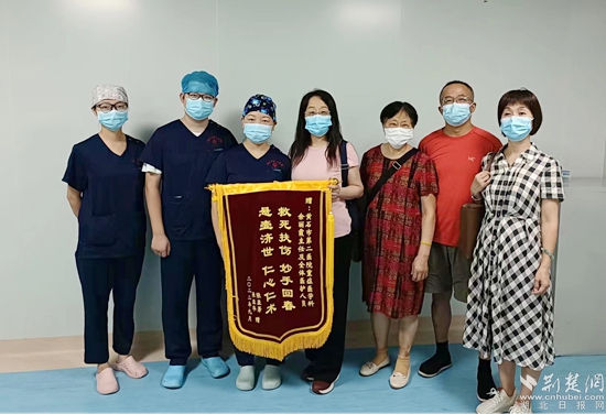 患者康复后为重症医学科送来锦旗。通讯员 供图