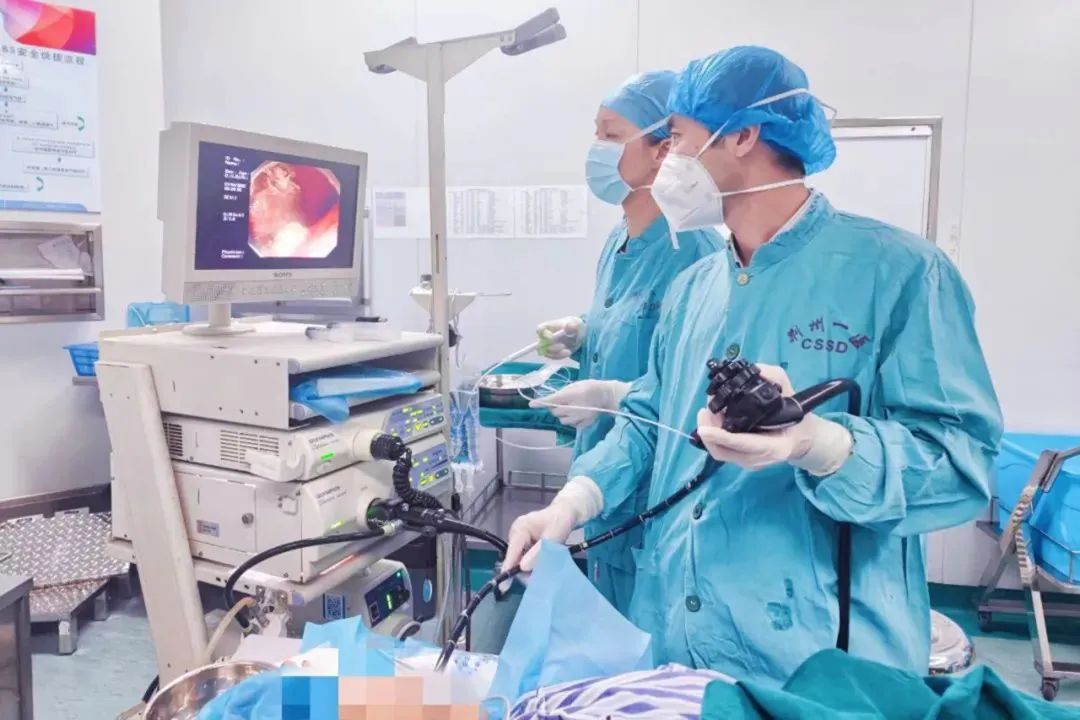 确定方案后,手术如期进行,在手术操作过程中,张庆主任在胃部有限的操作空间里,不仅要反复尝试将石块割碎,还要小心翼翼的取出棱角分明的碎石,避免划伤胃壁和食管,而这个过程要迅速、灵活,避免小块结石因胃部蠕动,掉落至肠道引起肠梗阻。精湛的手术技巧和细致耐心的态度是手术成功的最大保障,张庆主任娴熟地夹起结石碎片不断变换调整着方向,穿过狭长的食管小心翼翼地一块块取出,再逐一取出石块后,细致的他又在刘女士的胃内认真探查一番,确认无结石碎片才结束手术。