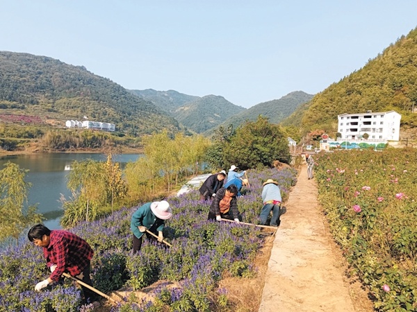 张湾区方滩乡沉潭河村村民正在开展环境整治活动。
