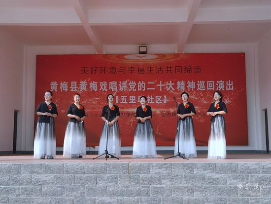 据了解,参加表演的有专业演员,也有民间黄梅戏票友,节目都是大家自编自导。现场群众在黄梅戏韵中加深了对党的二十大精神的理解,现场响起阵阵掌声。