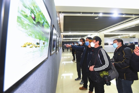 12月9日,市民在荆州市图书馆参观“自然资源、美丽荆州”摄影艺术展。