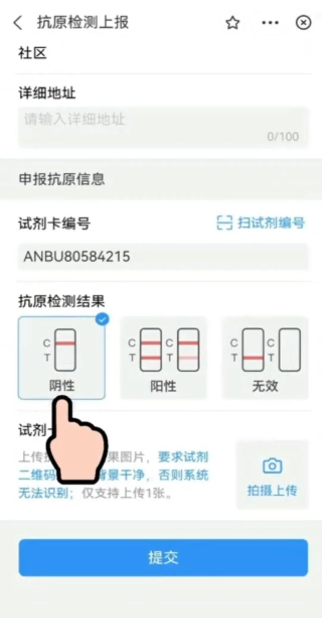 4.上传抗原检测试剂盒结果图片。