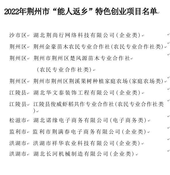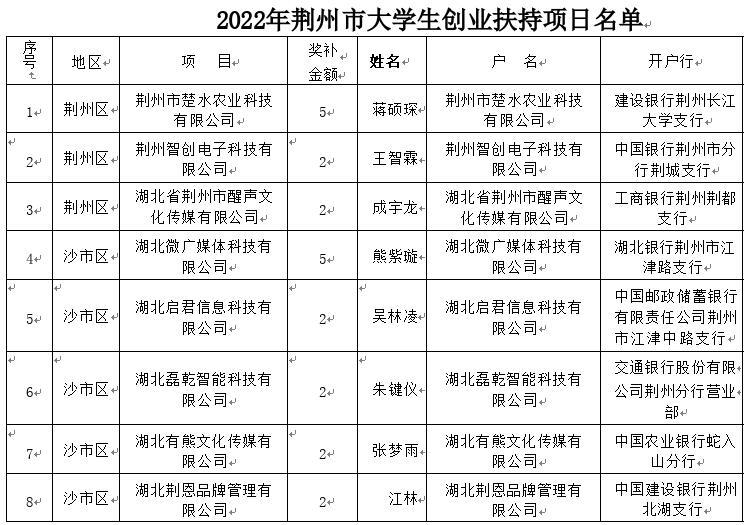 其中,10个荆州市 “能人返乡”实绩突出乡镇分别获得20万元奖补、10个荆州市“能人返乡”特色创业项目分别获得8万元奖补、5个劳务品牌和5家领军企业分别获得10万元奖补,17个大学生创业扶持项目分别获得10万元、5万元、2万元奖补。