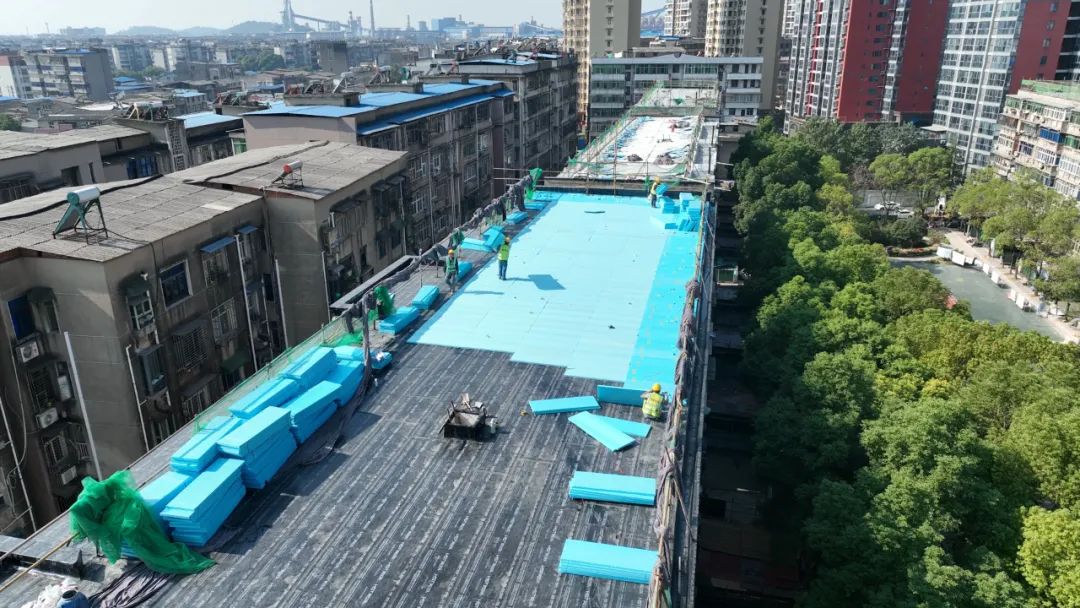 小区网格员艾秀丽说,冶建小区楼顶屋面改造工程,主要是铲除原有屋面保护层、防水层,重新进行防水、保温施工。目前,除1号楼正在紧张施工外,2—7号楼已全部完成施工。