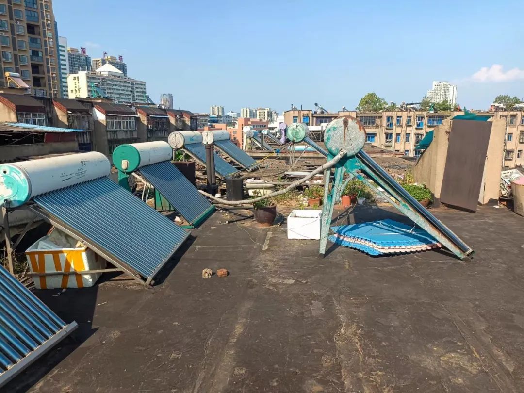 2022年上半年,冶建小区被纳入老旧小区改造。得知消息后,顶楼居民兴奋不已,困扰多年的屋顶渗水问题,终于让他们看到解决的希望。但同时,施工方提出“两不做”,即楼顶117台太阳能不拆完不施工,顶层每户10元/平方米的众筹费不交齐不施工。