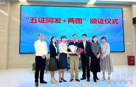 罗田县政务服务和大数据管理局为企业颁发“五证”。通讯员 供图