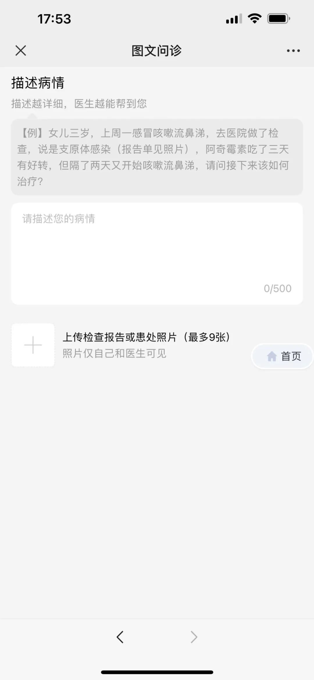 第八步:根据自身情况描述病情并提交后等待医生回复即可。